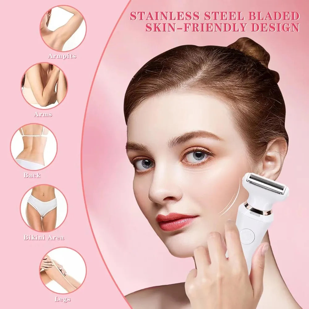 Uređaj sa sečivima od nerđajućeg čelika 🔪 i dizajnom prijatnim koži 🧴 pruža temeljno i udobno brijanje. Fleksibilne glave 🔄 prate obline tela za lako uklanjanje neželjenih dlačica – bez posekotina! ❌✂️