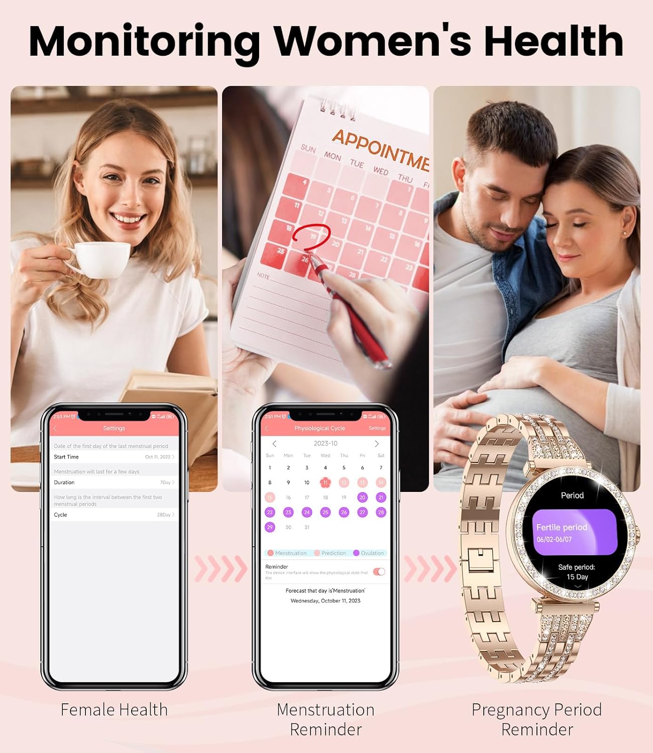 Osnažite se uvidom u menstrualni ciklus. Naš pametni sat vam pomaže da pratite i predvidite svoje menstrualne cikluse, pružajući vrijedne informacije za vaše cjelokupno zdravlje i dobrobit.