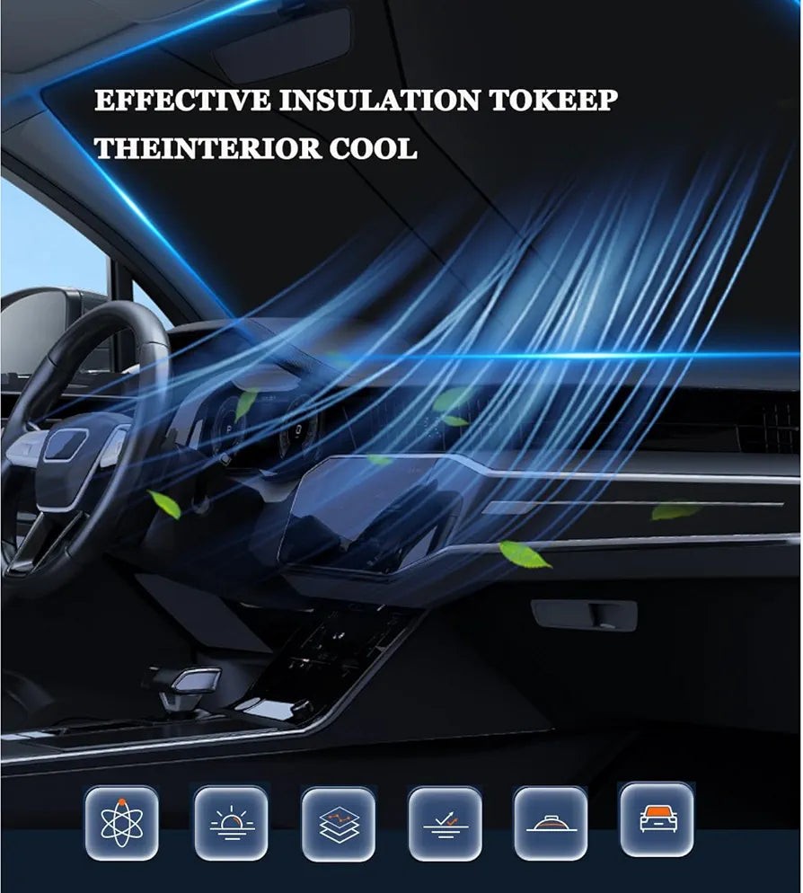 【Nova nadograđena senka za sunce za vetrobransko staklo】Ova senka je dizajnirana da unutrašnjost vašeg vozila održi hladnom i udobnom. Takođe sprečava bleđenje i pucanje na kontrolnoj tabli, dok štiti elektroniku, kontrolnu tablu, kožu i sedišta vašeg automobila.